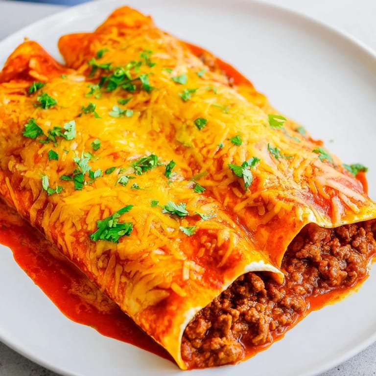 Save to Pinterest My neighbor Marcus showed up one evening with a container of homemade enchilada sauce and an expectant look, practically daring me to do something worthy with it. I'd been standing in my kitchen for twenty minutes, staring at ground beef and tortillas, when he casually mentioned his abuela made enchiladas every Sunday without measuring anything. That nudge sent me scrambling through my spice cabinet, and what emerged from that oven an hour later was so good he asked for the recipe before even sitting down. Now whenever I make these, I can still hear him say, "You nailed it," which somehow still beats.
