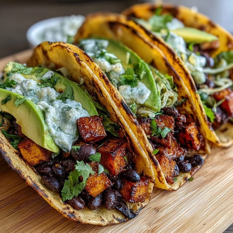 Save to Pinterest I discovered these tacos on a lazy Sunday afternoon when my fridge was calling out for rescue—half a can of black beans, two sweet potatoes getting soft around the edges, and a red bell pepper that needed saving. Rather than toss them, I roasted everything with whatever spices were within arm's reach, wrapped it all in a warm tortilla, and suddenly I had stumbled onto something that felt like actual food rather than kitchen salvage. My partner came home to the smell of caramelized sweet potato and smoked paprika, and before I could even finish plating, they were asking when I'd make it again.
