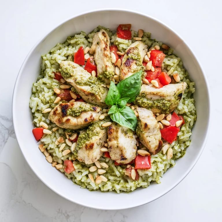 Save to Pinterest My roommate walked in one evening and found me staring into the fridge with that blank look we all get around 7 p.m. She pulled out leftover rice, a jar of pesto, and some chicken, then said, "Let's just throw it all together." What came out of that skillet twenty minutes later became our weeknight savior. The smell of basil hitting warm chicken filled the tiny kitchen, and suddenly dinner felt intentional again, not like we were scrambling.