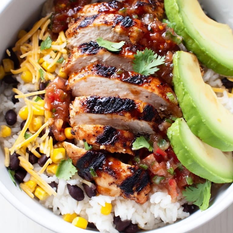 I often make extra and pack the components separately in the fridge for quick lunches all week. The rice, beans, corn, and chicken keep well for up to four days in airtight containers, and I slice the avocado and add fresh toppings right before eating. To reheat, I warm the rice and chicken in the microwave with a damp paper towel over the top to keep everything moist, then assemble the bowl with cold salsa and avocado. It tastes just as good the second or third day, sometimes even better once the flavors have had time to meld.