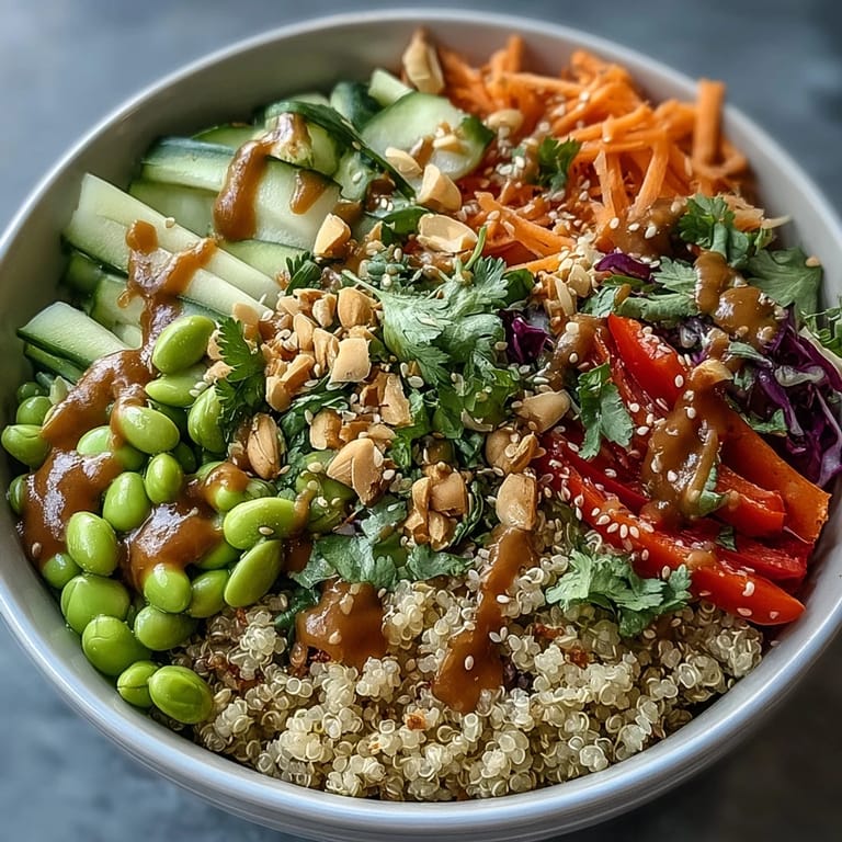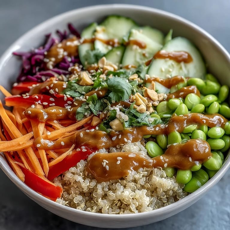 The structure of this bowl—creamy grain, fresh vegetables, protein, and bold dressing—stays the same, but everything else is negotiable. I've made it with millet instead of quinoa, substituted shredded sweet potato for the carrot, and even added roasted chickpeas when I wanted extra crunch. The dressing formula is flexible too; if you're not a peanut butter person, tahini or almond butter create a similar magic with just a slight flavor shift.