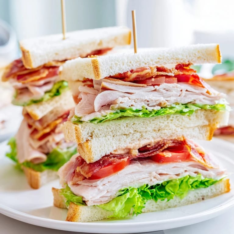 Save to Pinterest There's something about a turkey club that takes me back to lazy Saturday afternoons at my aunt's kitchen counter, where she'd orchestrate these towering sandwiches with the precision of a chef and the casualness of someone just feeding hungry relatives. The first time I made one myself, I was convinced the triple-decker structure would collapse the moment I touched it, but then I discovered the magic of the cocktail stick and the gentle diagonal cut. Now, whenever I build one, I can almost hear her humming while she worked, turning simple ingredients into something that felt like celebration.